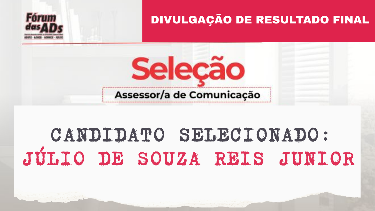 DIVULGAÇÃO DE RESULTADO FINAL DO PROCESSO DE SELEÇÃO PARA A ASSESSORIA DE COMUNICAÇÃO DO FAD 10/09/2025 FAD O FAD agradece a todas e todos que participaram do processo seletivo. Parabenizamos a selecionada/os selecionados para a segunda e terceira etap...