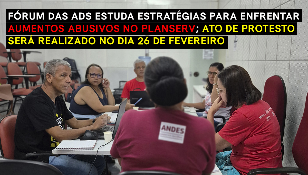 Fórum das ADs estuda estratégias para enfrentar aumentos abusivos no Planserv; ato de protesto será realizado no dia 26 de fevereiro 11/02/2026 Ascom Fórum das ADs Aumento na contribuição do plano de saúde impactou inúmeros/as servidores/as, com reajustes a ultrapassar mais de 100%...
