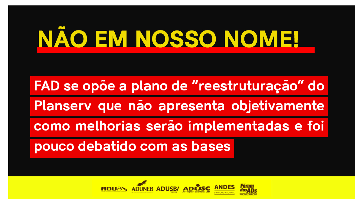 FAD se opõe a plano de “reestruturação” do Planserv 12/12/2025 Ascom Fórum das ADs Proposta de reestruturação apresentada carece de muito mais nitidez e não responde adequadamente sobre como se efetivará a...