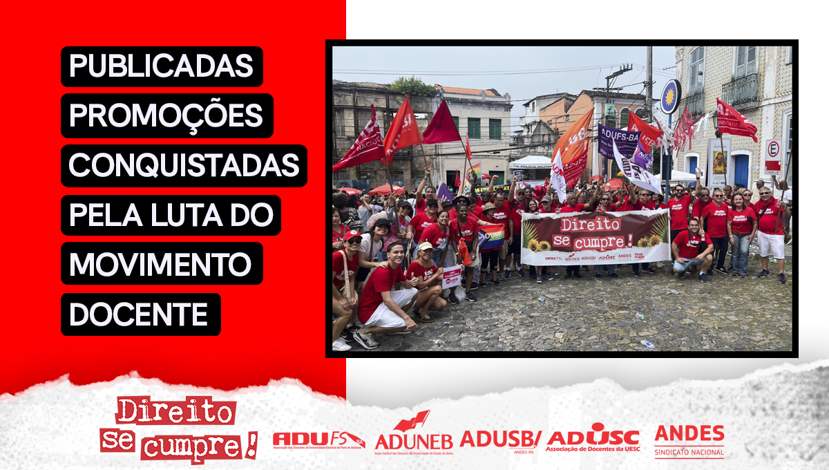 Viva a luta! Lei que garante mais de 500 promoções docentes é sancionada 09/09/2025 FAD O movimento docente das Universidades Estaduais da Bahia conquistou uma grande vitória nesta segunda-feira (08). Em cerimônia realizada n...