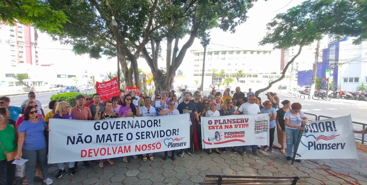 Mobilização por melhorias no Planserv em Feira de Santana. Foto: Ascom Adufs